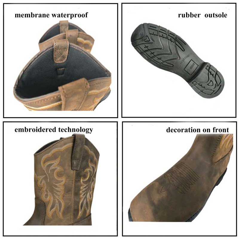 | Embroidery Decoration | These full-grain leather cowboy boots stand out with stunning embroidery decoration: Intricate, artful patterns elevate their texture and visual appeal, while the detailed stitching pairs flawlessly with the premium leather. This design blends uniqueness, style, and durability, turning a functional boot into a statement piece. |