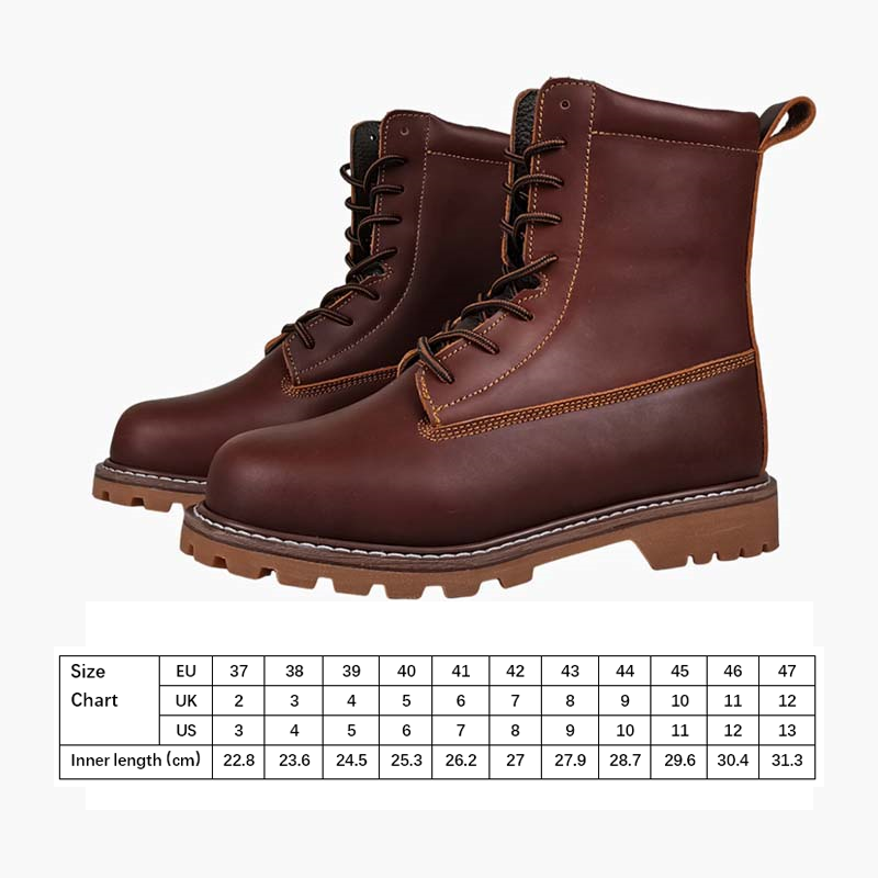 Genuine Leather Material | Red brown grain cow leather is a popular option for high boots due to its natural durability and resistance to wear and tear. This type of leather looks great and ages beautifully, developing a unique patina over time. |