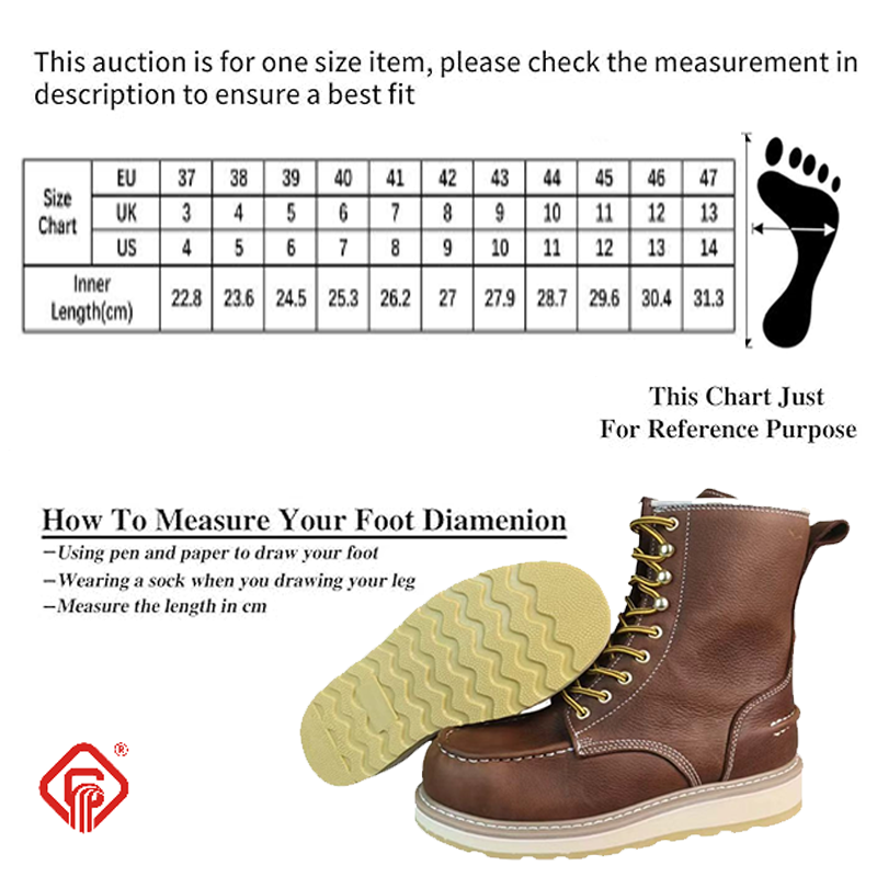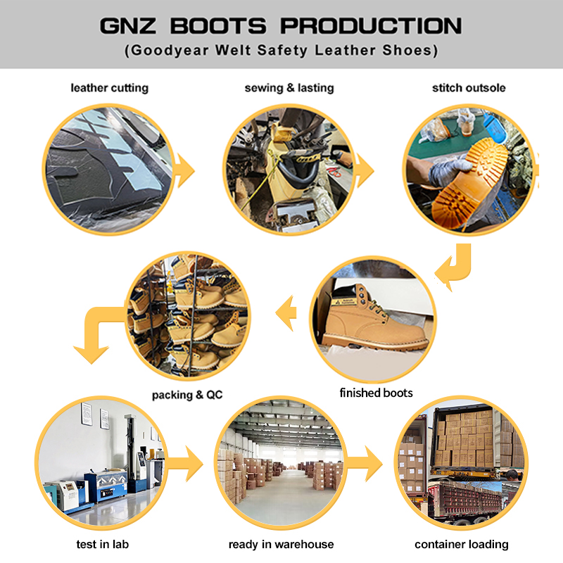 | Impact and Puncture Resistance | Goodyear welted shoes is equipped with a steel toe cap, which can withstand an impact of 200 joules and a compression of 15 kilonewtons. Additionally, they often come with midsoles with a puncture resistance strength of 1100 newtons and anti-slip outsoles to enhance safety in the workplace and prevent severe impacts.It can also equipped with composite toe and kevlar midsole. |