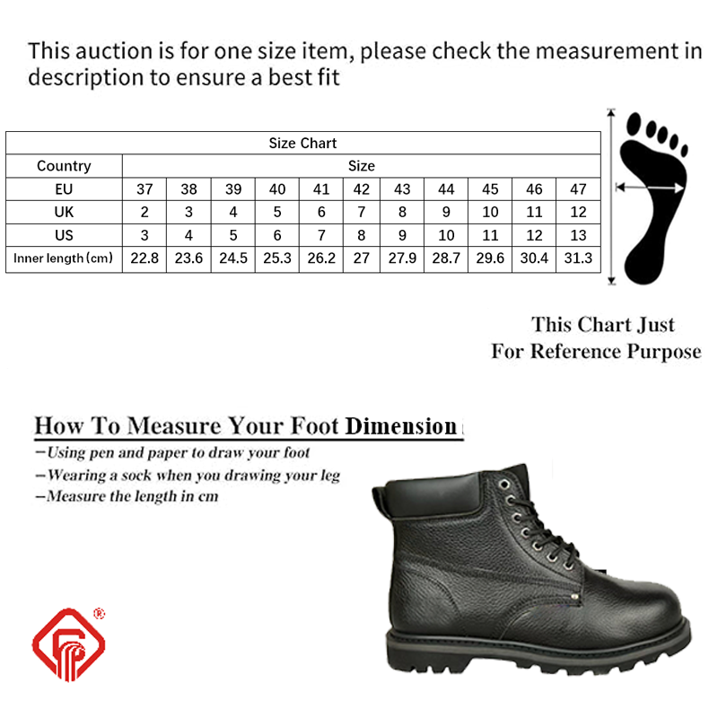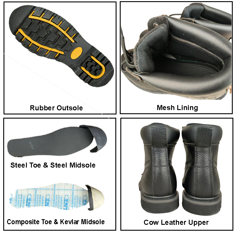 | Steel Toe | Stainless steel toe cap offers 200J impact & 15KN compression protection, safeguarding feet from crushing and injuries in industrial work. |