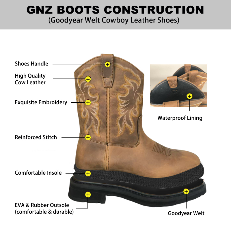 Embroidery Goodyear Welt Boots Cowboy Grain Lea...